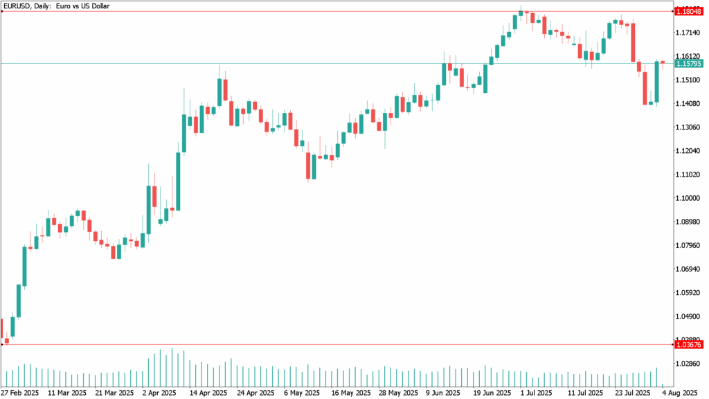 Despite Monday’s pullback, downside pressure on EUR/USD may be limited. The Euro (EUR) remains supported by expectations that the European Central Bank (ECB) will delay rate cuts amid persistent inflation. Eurozone CPI held steady at 2.0% in July—slightly above the 1.9% forecast—signaling inflation remains above the ECB’s near-term projections. In addition, newly imposed U.S. tariffs, including a 15% duty on EU exports, have added further complexity to the outlook.