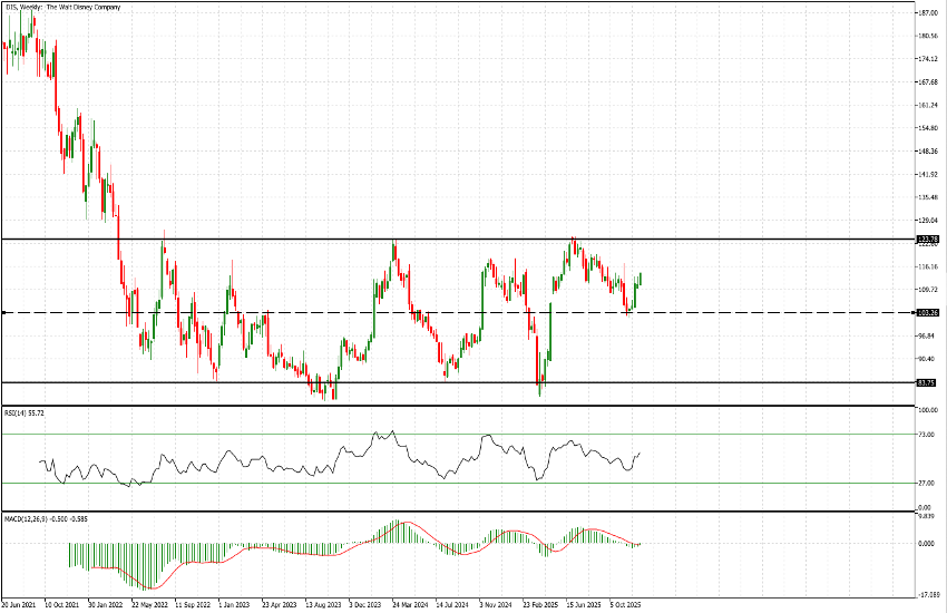 The weekly chart illustrates the investor skepticism that has weighed on the company since late 2021. During this period, the stock experienced a rapid collapse, effectively losing half its value as it plummeted from the $170–$185 range to the $85 support zone (and briefly lower). For the past three years, the stock has traded within a well-defined sideways range, oscillating primarily between the aforementioned $85 floor and a ceiling near $124; the $100–$105 level also appears to act as a significant pivot point. This price action reflects a “wait-and-see” approach from traders, who are monitoring the execution of the company’s strategic pivot—a transition that, as always, carries inherent risks.