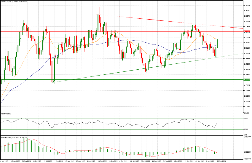It is also worth noting that today the price has broken above the 50-day moving average and is currently testing the 21-day moving average near 1.17. This level is likely to represent initial resistance; a confirmed break would open the way toward 1.1720 and subsequently 1.1745. On the downside, the 1.1650 level—broken earlier this morning—remains an important reference. Finally, the MACD has turned negative, and of equal, if not greater, importance is the consideration that a sustained risk-off move typically continues to channel flows into the U.S. dollar, given its safe-haven status.