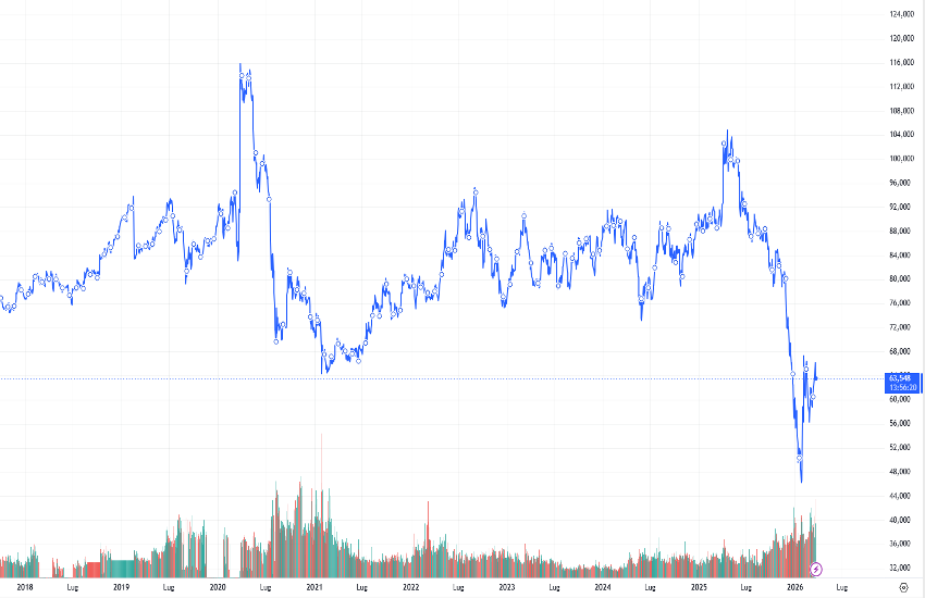 A few months ago, focus was placed on the Gold/Silver ratio, which was trading near historically low levels (around 46). In periods of elevated volatility, trading spreads that exhibit cointegration—such as this ratio or Brent vs. WTI—can be a more effective approach. The expectation was that silver would underperform gold, regardless of direction, given its relative overvaluation. This scenario has materialised: the ratio has risen to 63.79 and may still have some upside potential, although it is now approaching more neutral territory.