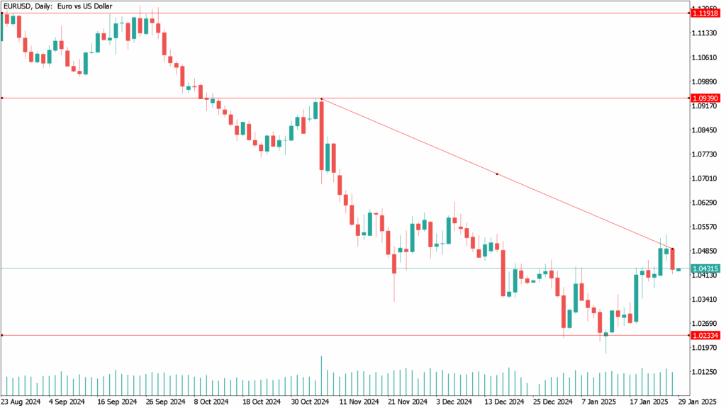 The EUR/USD pair trimmed its gains of recent weeks on Tuesday, losing six-tenths of a percent and retreating slightly toward the 1.0400 level, as markets brace for another Federal Reserve meeting on Wednesday. Markets overwhelmingly expect the Fed to keep interest rates steady in January, although investors will be watching not only Fed Chairman Jerome Powell’s press conference but also any tweets from US President Donald Trump.